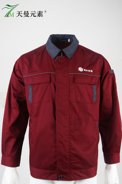 目前,工作服已經(jīng)進(jìn)入尾部工作,開始在打包了,我們拿一件樣衣給大家展示下,這次采用棗紅色為主色調(diào),領(lǐng)口為深灰色,顯得沉穩(wěn)大氣,款式還是傳統(tǒng)的工裝款式,胸口是白色刺繡logo,相信員工穿上這款工作服會更加努力投入工作~